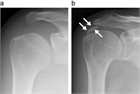 1. 腱板内に沈着した石灰が大きくなり、慢性化してインピンジメント症状や関節拘縮を引き起こすこともある。