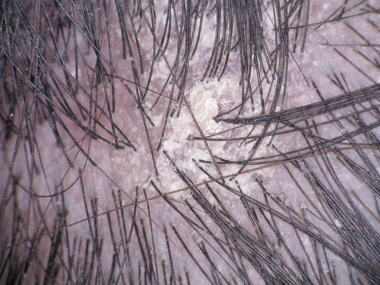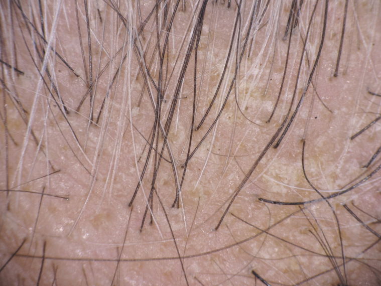 病 歴:受診数カ月前から自覚症状を伴わないフケが目立ってきた。