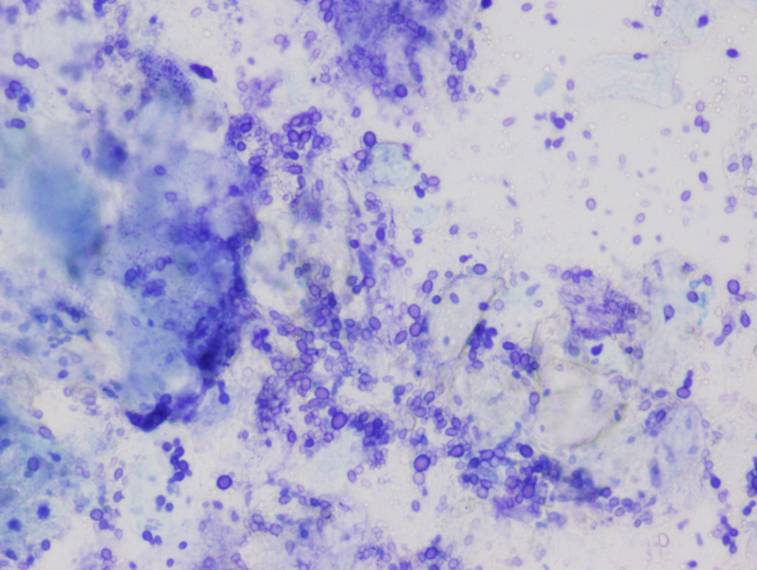 酸性メチレンブルー染色にて認められた鱗屑中の菌要素