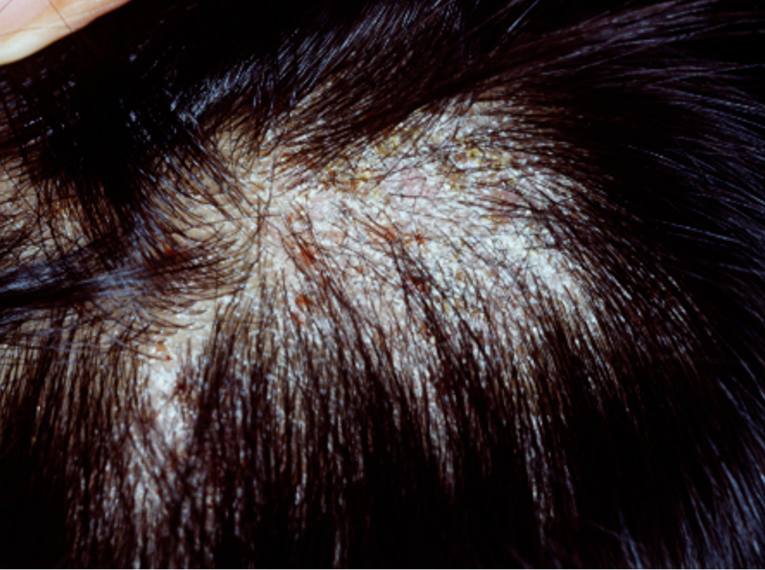 病 歴:受診数年前より頭部に瘙痒が強い。