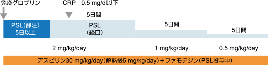 1: 重症川崎病患者に対する免疫グロブリンと免疫グロブリン・プレドニゾロン初期併用投与のランダム化比較試験実施計画書. http://raise.umin.jp/document/plan_02.pdf p.7(2025年5月閲覧)