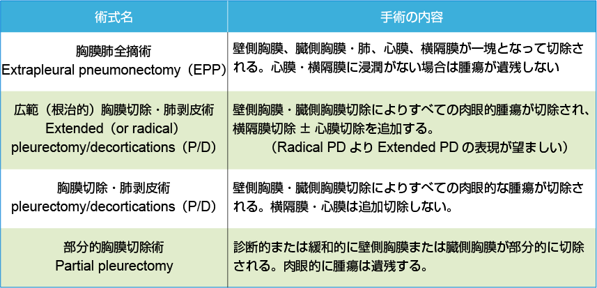 IASLC*/IMIG**による胸膜中皮腫に対する術式名称と内容