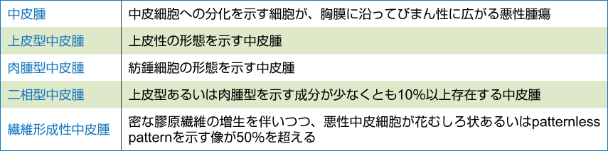 日本肺癌学会『肺癌取扱い規約 第8版』の中皮腫各組織亜型の定義