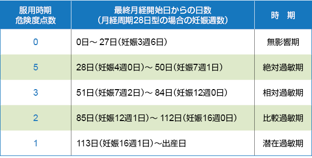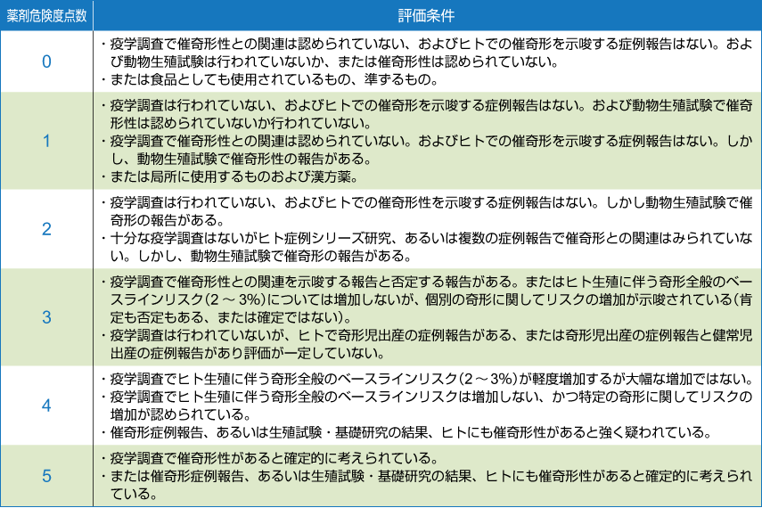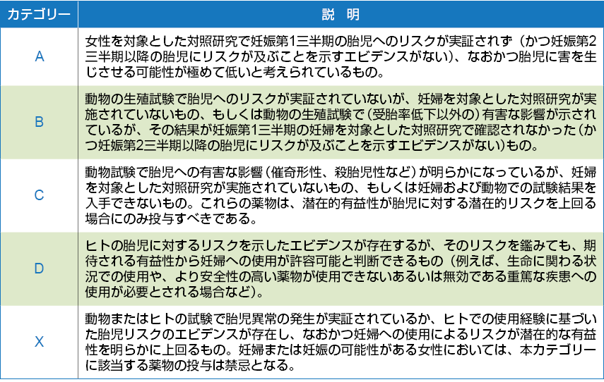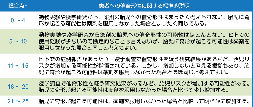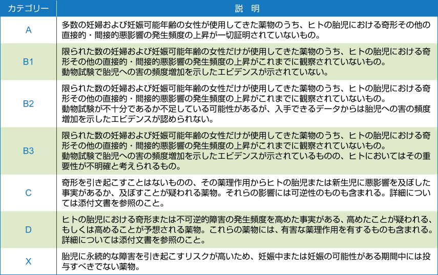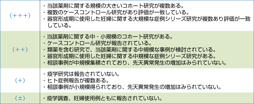 虎の門病院の「催奇形の危険度に関する情報の質と量」に関する分類