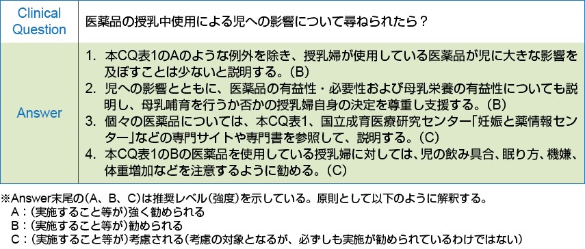 『産婦人科診療ガイドライン-産科編2023』における、授乳中の女性の薬物使用に関連したClinical Question & Answer(CQ104-5)