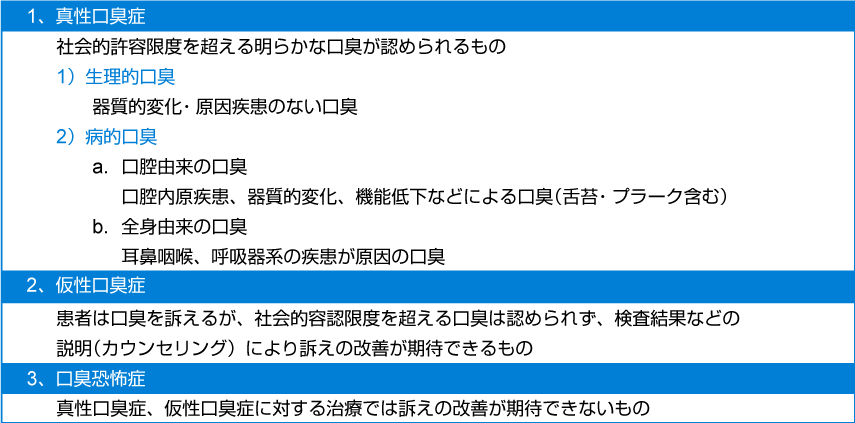宮崎秀夫、荒尾宗孝、岡村一彦ほか:口臭症分類の試みとその治療必要性. 新潟歯学会誌 1999; 29:13.