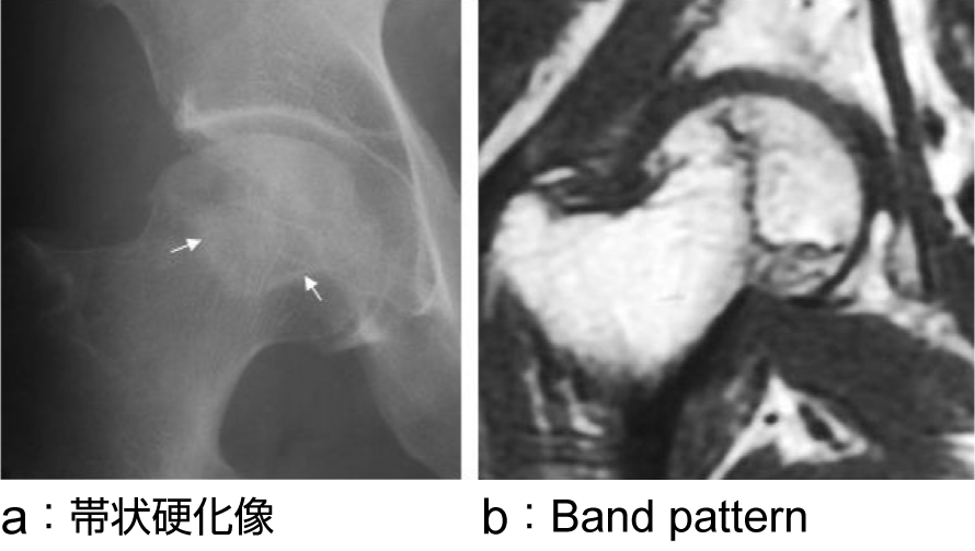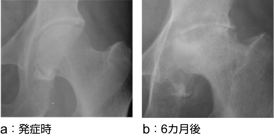 発症後、比較的短期間での急速な骨頭の骨破壊が認められる。