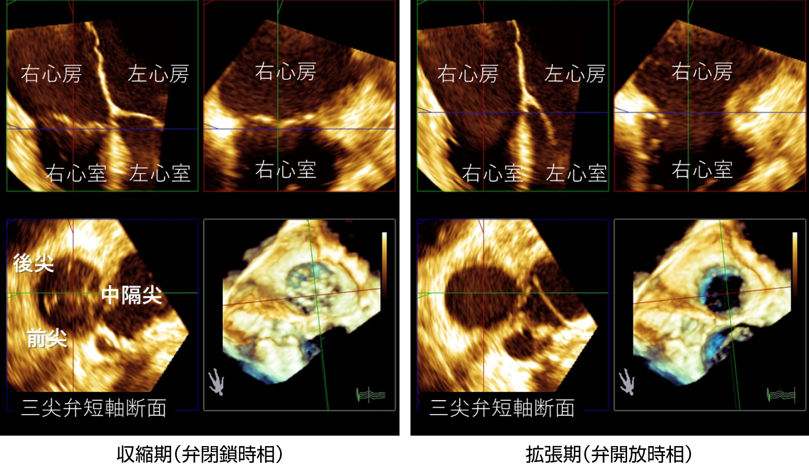 三尖弁狭窄の3D心エコー図画像(MPR展開)