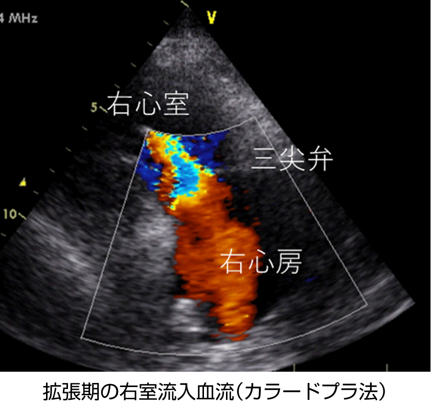 図2 三尖弁狭窄症の心エコー図(右室流入断面)