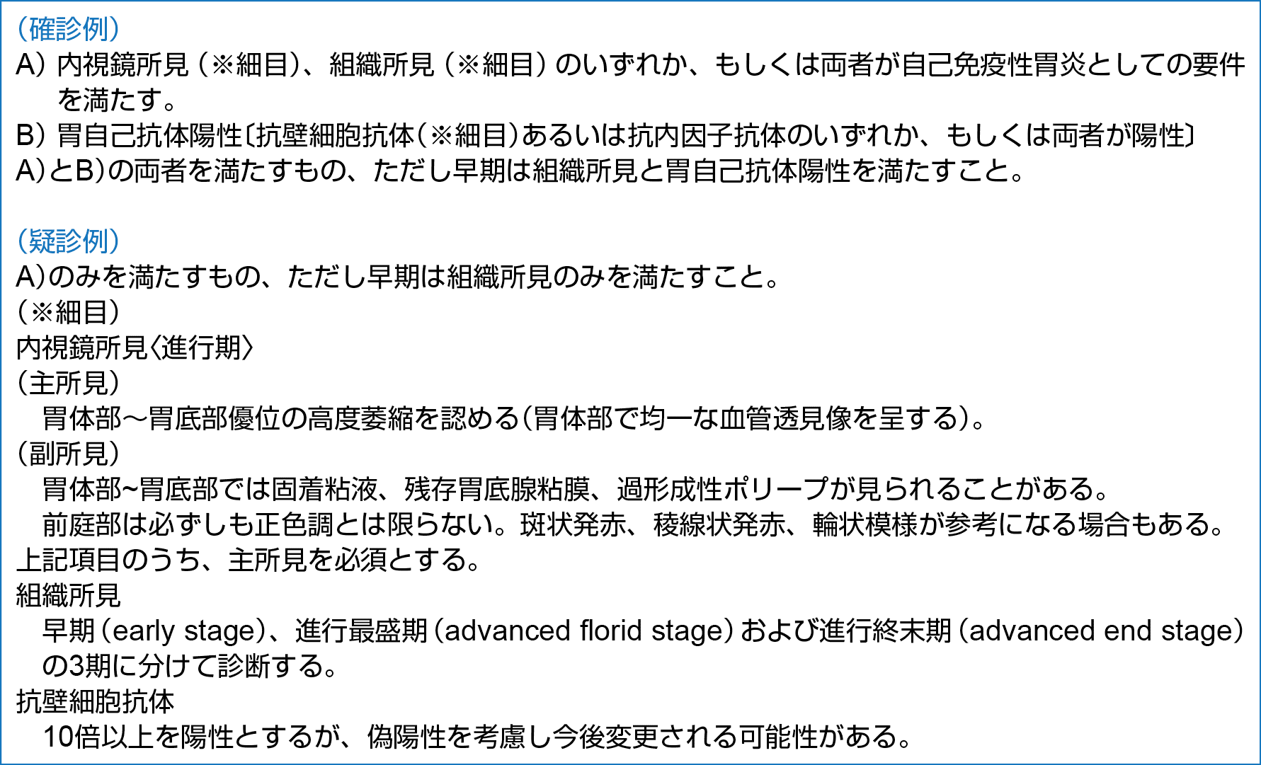自己免疫性胃炎の診断基準