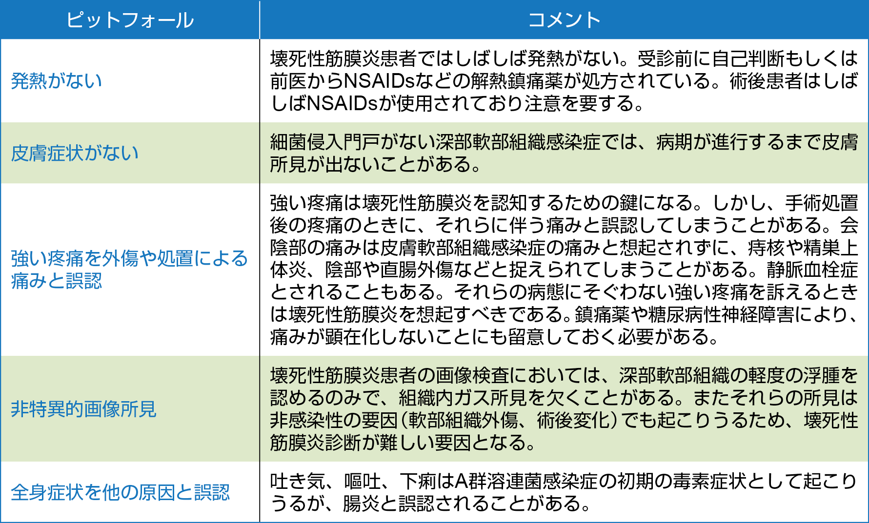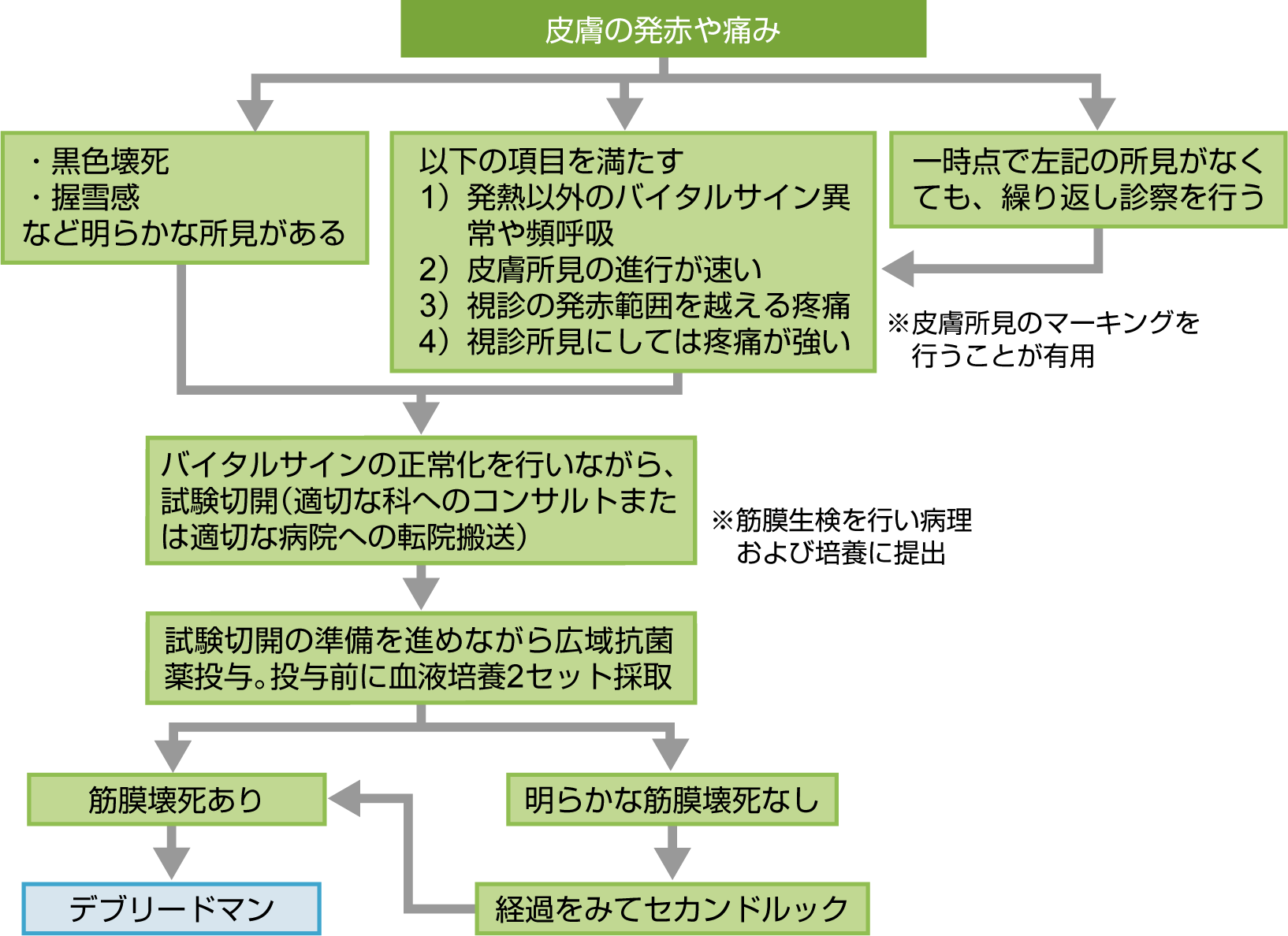 Abstract/Text: Necrotizing soft tissue infections occur after traumatic injuries, minor skin lesions, nonpenetrating injuries, natural childbirth, and in postsurgical and immunocompromised patients. Infections can be severe, rapidly progressive, and life threatening. Survivors often endure multiple surgeries and prolonged hospitalization and rehabilitation. Despite subtle nuances that may distinguish one entity from another, clinical approaches to diagnosis and treatment are highly similar. This review describes the clinical and laboratory features of necrotizing soft tissue infections and addresses recommended diagnostic and treatment modalities. It discusses the impact of delays in surgical debridement, antibiotic use, and resuscitation on mortality, and summarizes key pathogenic mechanisms.