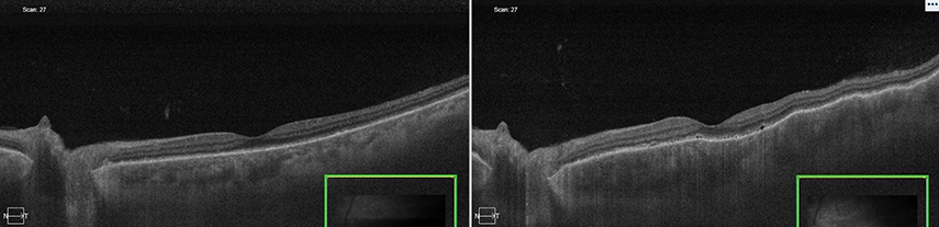再燃前後のOCT画像(左がプレドニン12.5mg内服時、右がプレドニン10mg内服時)