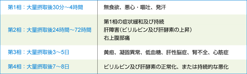 急性アセトアミノフェン中毒の症状の経過