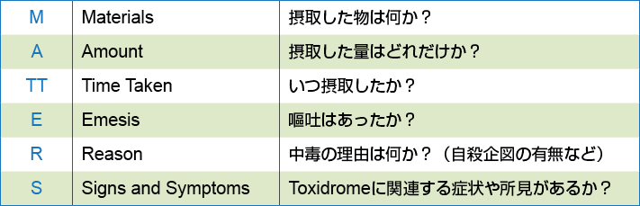 薬物中毒を疑ったときの問診事項「MATTERS」