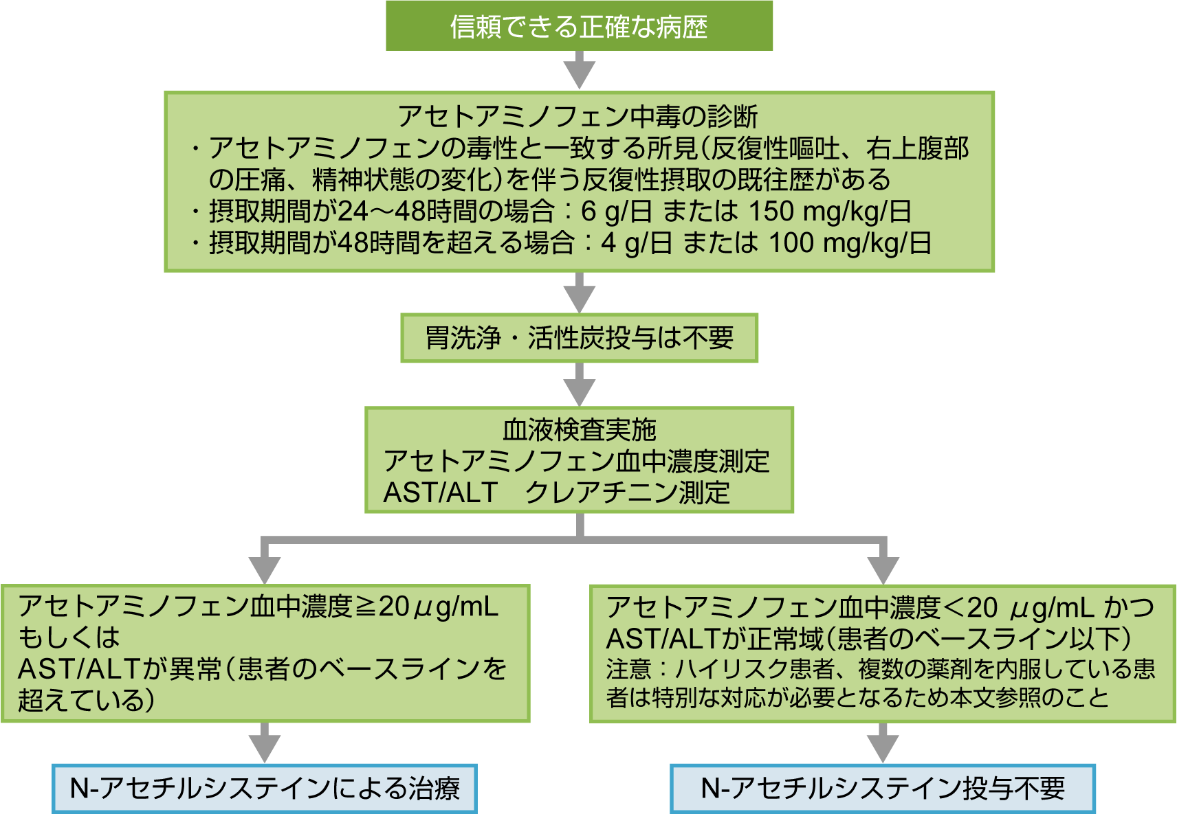 急性アセトアミノフェン中毒時のアルゴリズム