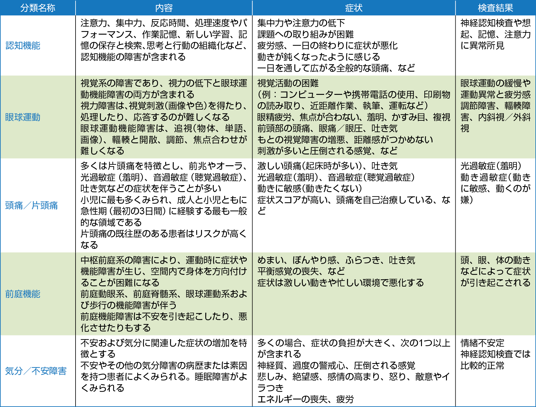1)Scorza KA, Cole W. Current concepts in concussion: Initial Evaluation and Management. Am Fam Physician. 2019; 99(7): 431, Table 4.