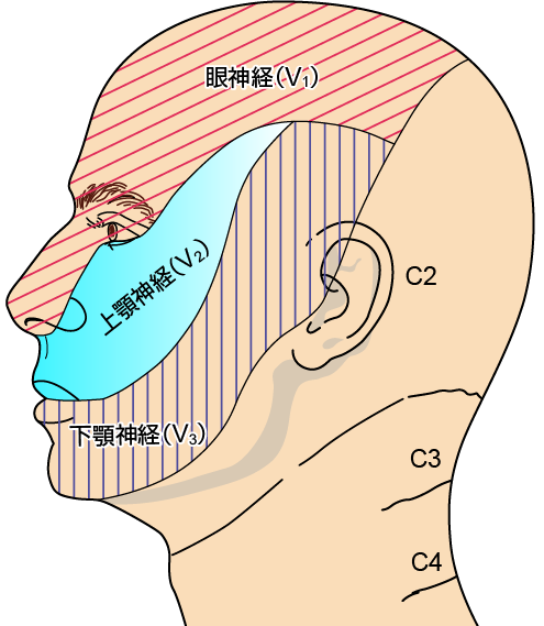 三叉神経の3つの主要な感覚枝は、眼神経(V
