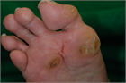1. 鶏眼・胼胝が多発している症例では、糖尿病性神経障害に伴う足変形、全身性強皮症などの基礎疾患、Werner症候群などの遺伝性疾患の存在に注意する。