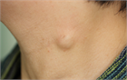 1. 触診し、被覆表皮と癒着し下床とは可動性があれば、まず粉瘤と考える(推奨度1)