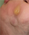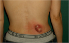 1. 「へそ」と呼ばれる毛包性中心凹窩を見つければ診断は容易である。鑑別疾患として石灰化上皮腫や脂肪腫をはじめとする軟部組織腫瘍がある。