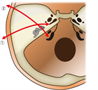1. 側頭骨骨折による顔面神経の即発性完全麻痺の症例では、NET、ENoGを行い、反応不良の場合は顔面神経減価術を検討する。不全麻痺症例、完全麻痺症例のうちNET、ENoGの反応良好な場合はまず保存的治療を行い、軽快がみられない場合は顔面神経減荷術の施行を検討する(推奨度2)