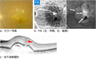 1. 新生血管型AMD にみられる黄斑部の新生血管は、以前は、「脈絡膜新生血管(choroidal neovascularization:CNV)」としていたが、黄斑部の網膜血管由来の新生血管も含まれることから、「黄斑新生血管(macular neovascularization:MNV)」となっている[3]